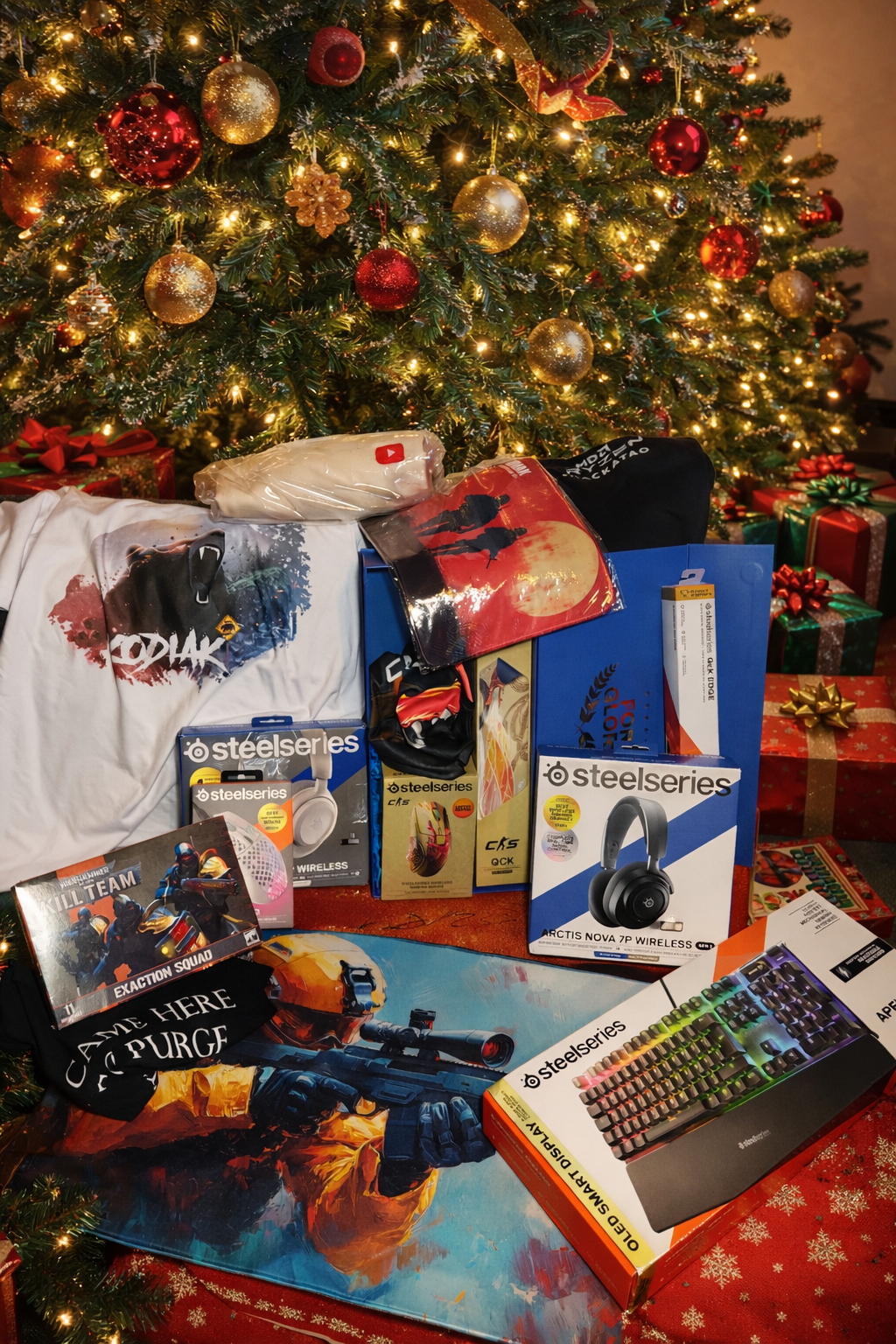 Artimo Deskmat + youtube pulcsiAMD pulcsi + QCK egérpadAWP Samurai póló + ZOWIE merchYoutube tagok között: Steelseries nova 3P + KODIAK póló